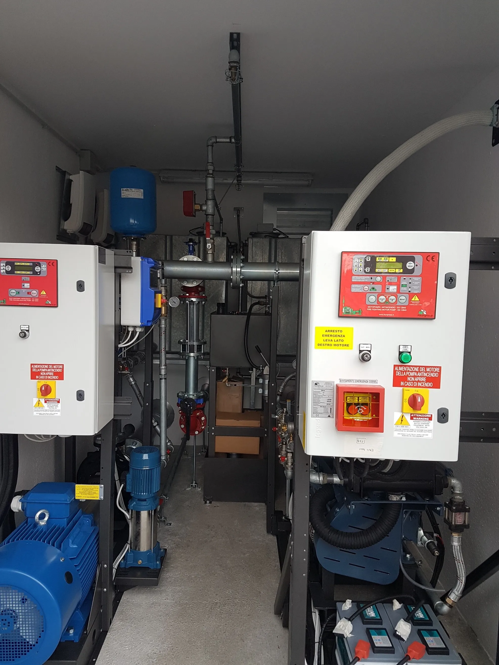Vi kan også levere prefabrikkerte sprinklerpumperom med alt utstyr ferdig koblet og testet fra fabrikk.